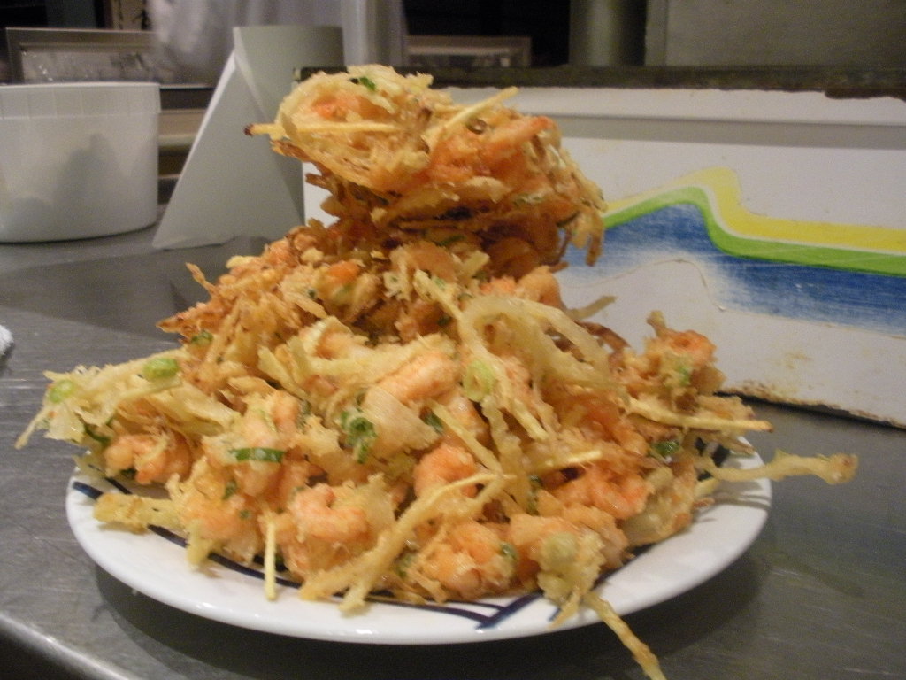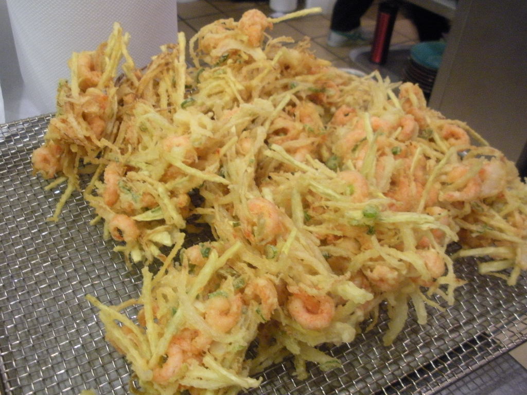 残り物の海老が入ったかき揚げ。みんなくらいついてきましたよ。