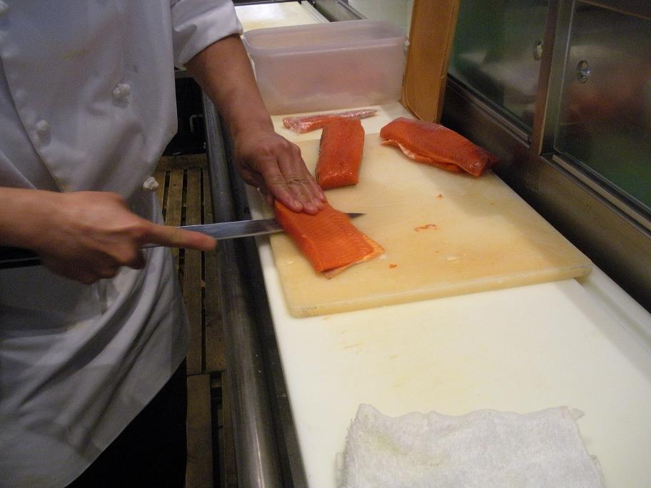 サーモンを仕込んでいます。